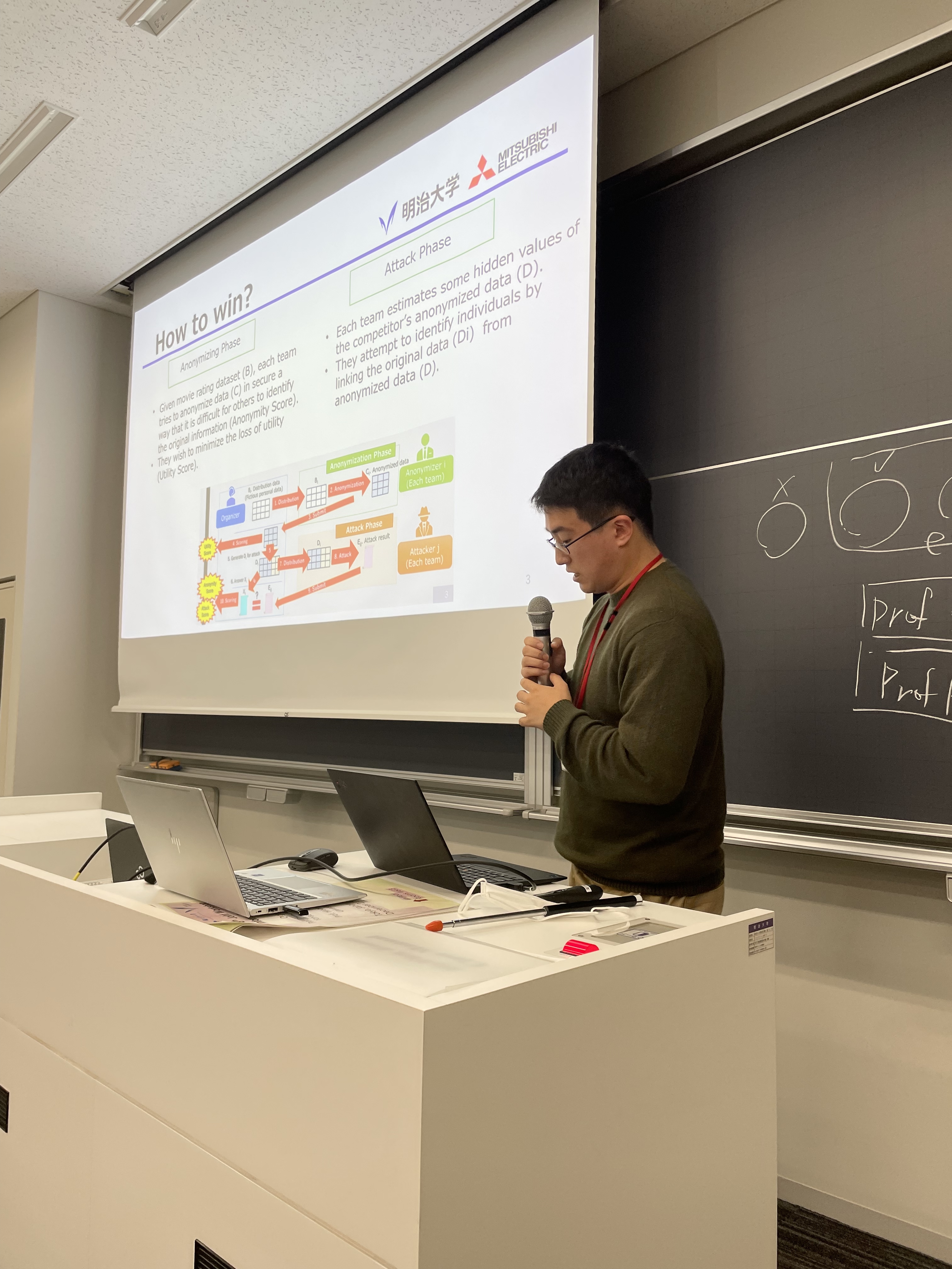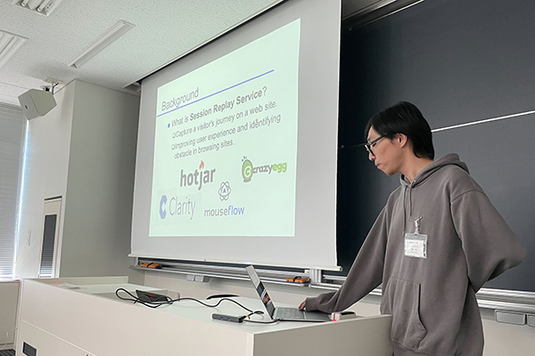 M2(2023年度)の梶間大地君が2024年3月19日,千葉工業大学 津田沼キャンパスで開催された第198回マルチメディア通信と分散処理・第104回コンピュータセキュリティ(CSEC)合同研究発表会にて,「セッションリプレイサービスからの個人識別性と国内外サイトにおけるプライバシーポリシーでの公表状況」と題した研究成果を発表しました.これに対して,セッションリプレイに対するUXの向上の度合いやサービス提供側の要請などに関する多くの質問助言が交わされました.