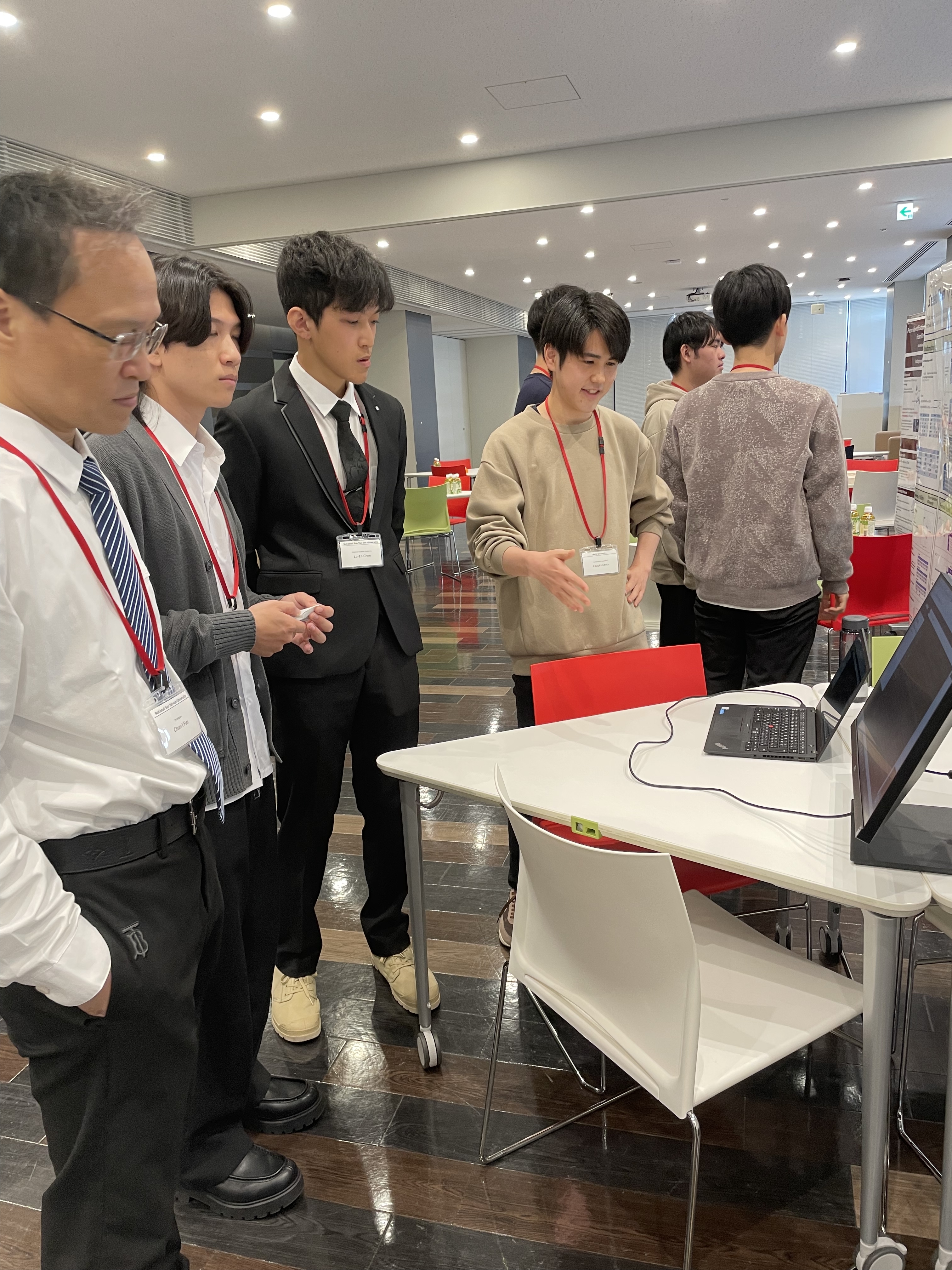 2024年2月29日に台湾の国立中山大学を訪問し、Chun-I Fan教授と学生32名と共に日台合同ゼミを開催しました。同年1月8日に明治大学で開催した日台合同ゼミに引き続き、大変盛り上がりました。菊池研究室からは4名が参加し、B4の清水と當麻、B3の山本が自分の研究についての発表を行いました。