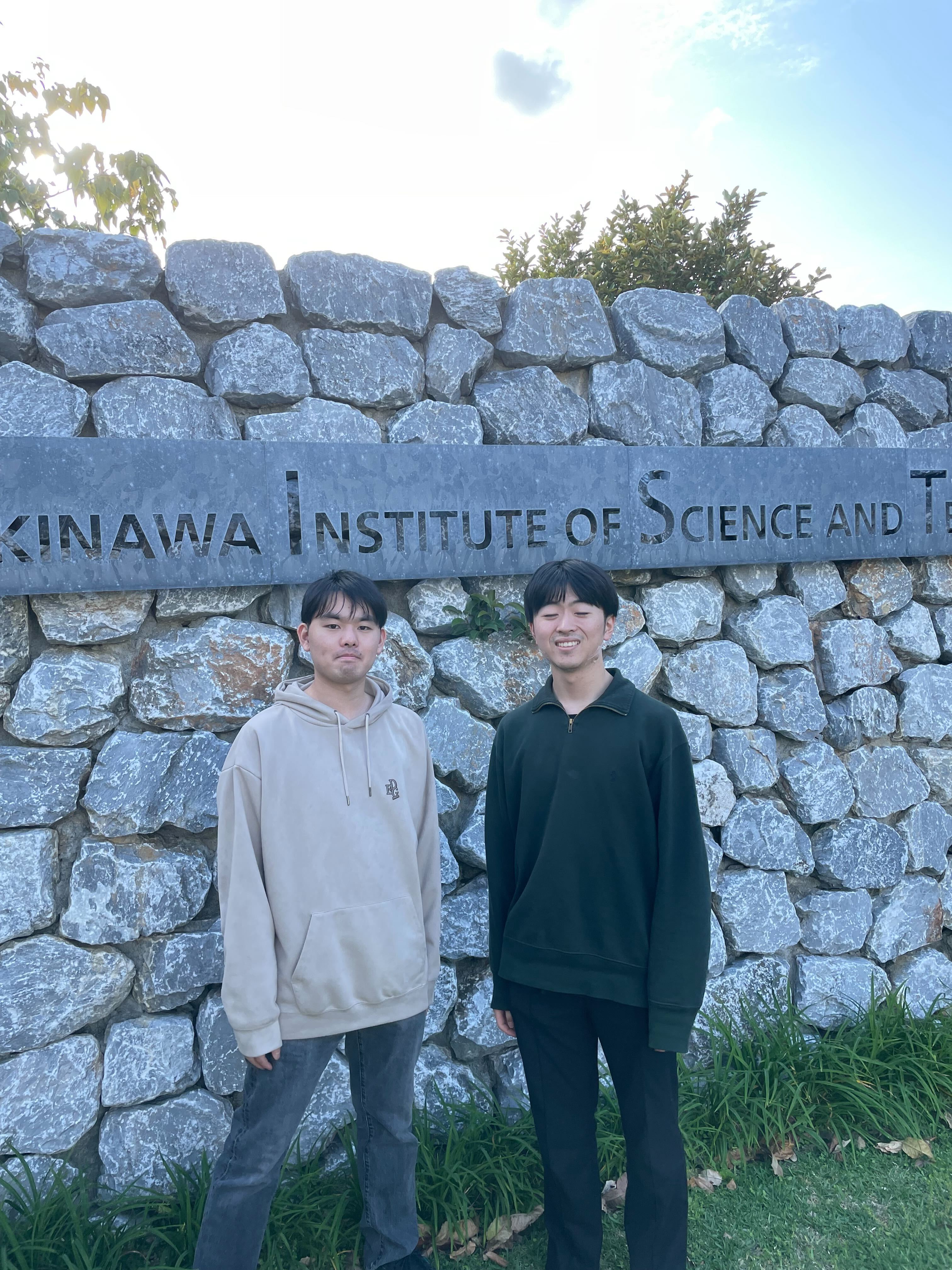 沖縄科学技術大学院大学にて 當麻僚太郎(左)清水正浩(右)