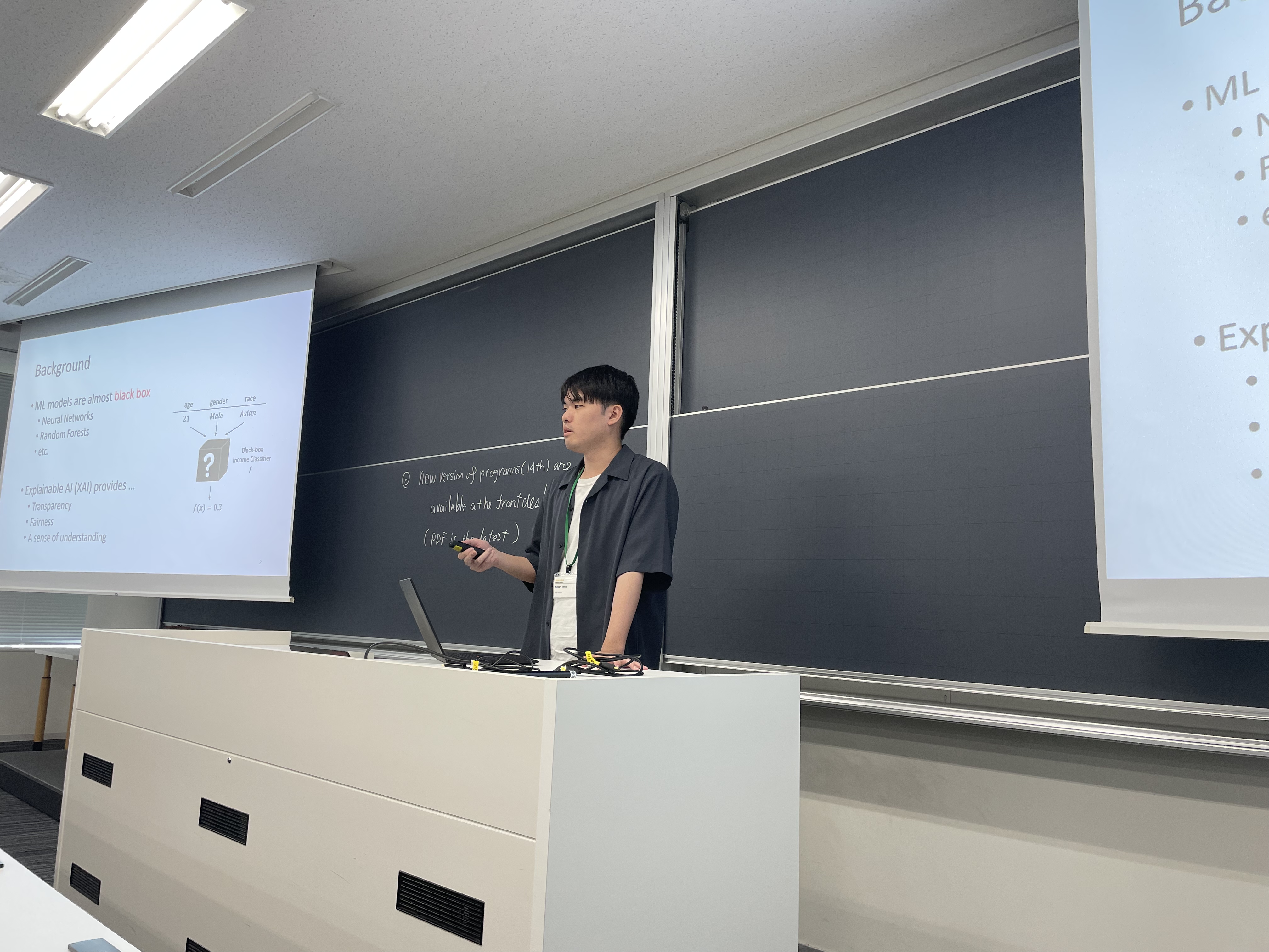 当研究室からB4(2023年度)の清水と當麻が発表を行いました。以下、発表者と発表テーマです。(発表順)