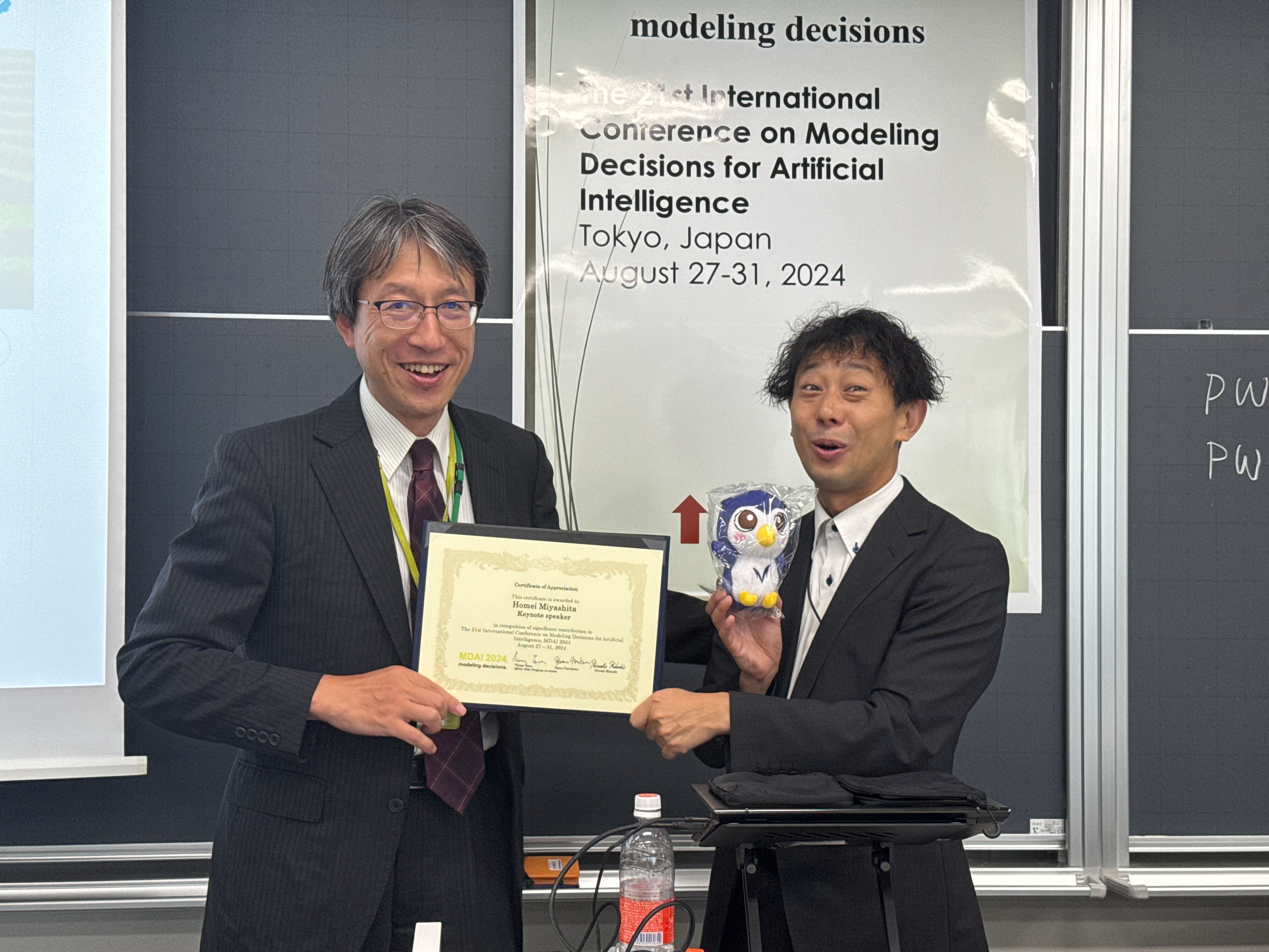 2024年8月27日から2024年8月31日までの4日間、明治大学 中野キャンパスで開催された 国際会議Modeling Decisions for Artificial Intelligence (MDAI) 2024(学会HP)に参加しました。 M1の當麻と清水が参加し、以下の題で発表を行いました。