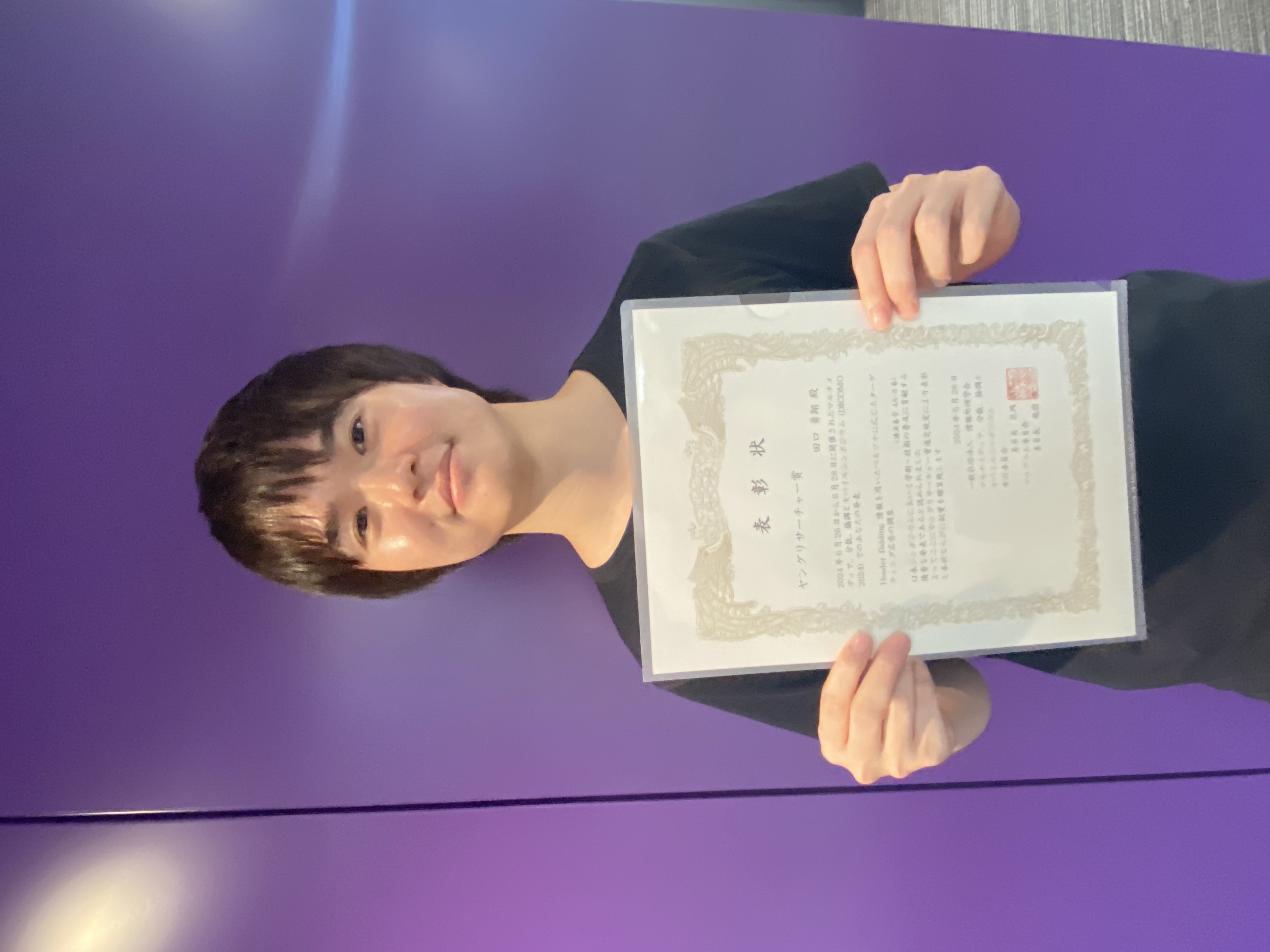 2024年6月26日から6月28日までの3日間,花巻温泉で開催された「マルチメディア,分散,協調とモバイル(DICOMO2024)シンポジウム」に参加しました. 当研究室からはM2の田口が参加し, 「Header Bidding情報を用いたペルソナに応じたターゲティング広告の調査」 というテーマで発表を行い,ヤングリサーチャー賞を受賞しました.