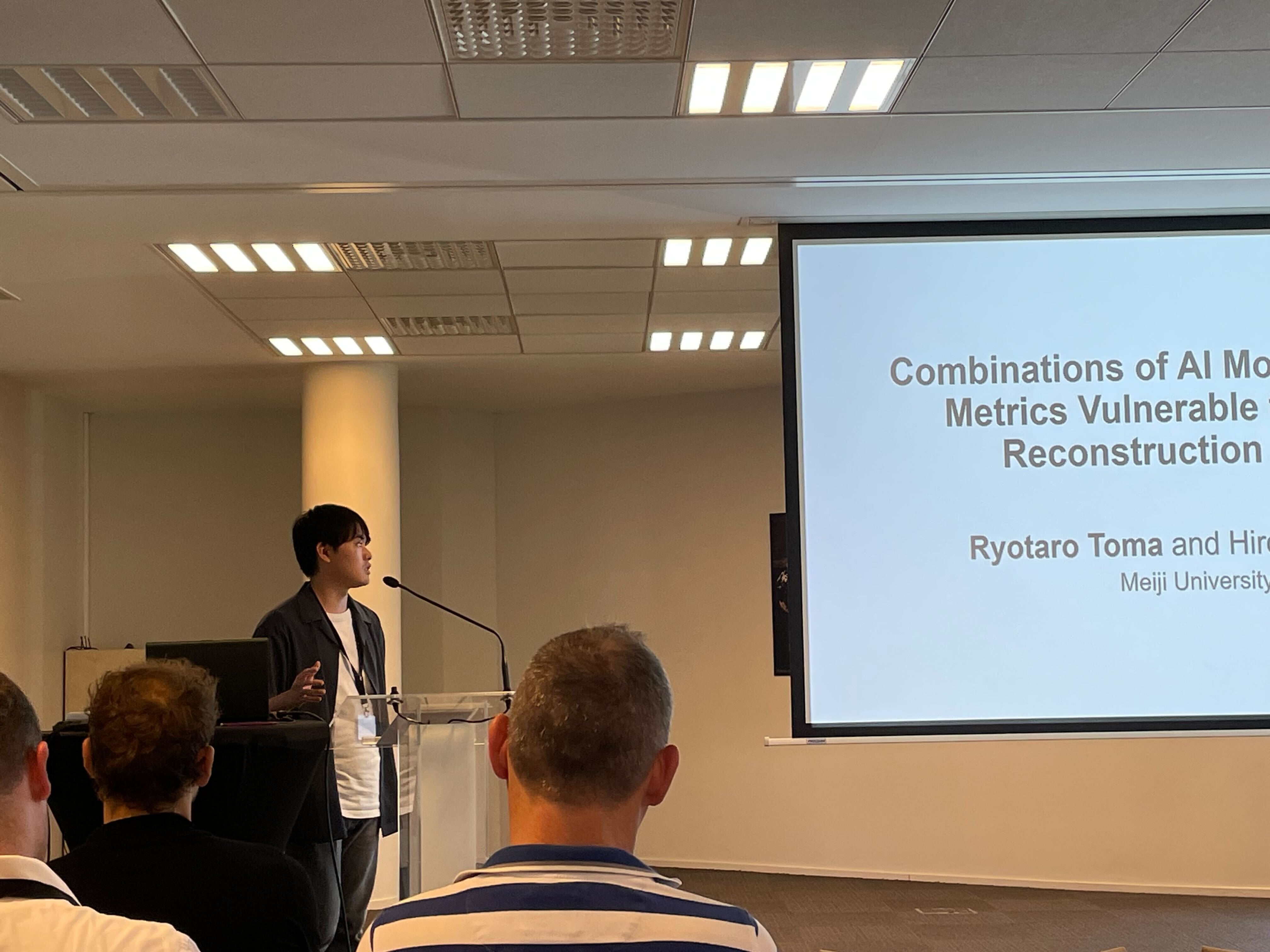 2024年9月25日から2024年9月27日までの三日間、フランスのAntibes - Juan-les-Pinsで開催された 国際会議Privacy in Statistical Databases (PSD) 2024(学会HP)に参加しました。当研究室からはM1の當麻が参加し、 「Combinations of AI Models and XAI Metrics Vulnerable to Record Reconstruction Risk」 という題で発表を行いました。